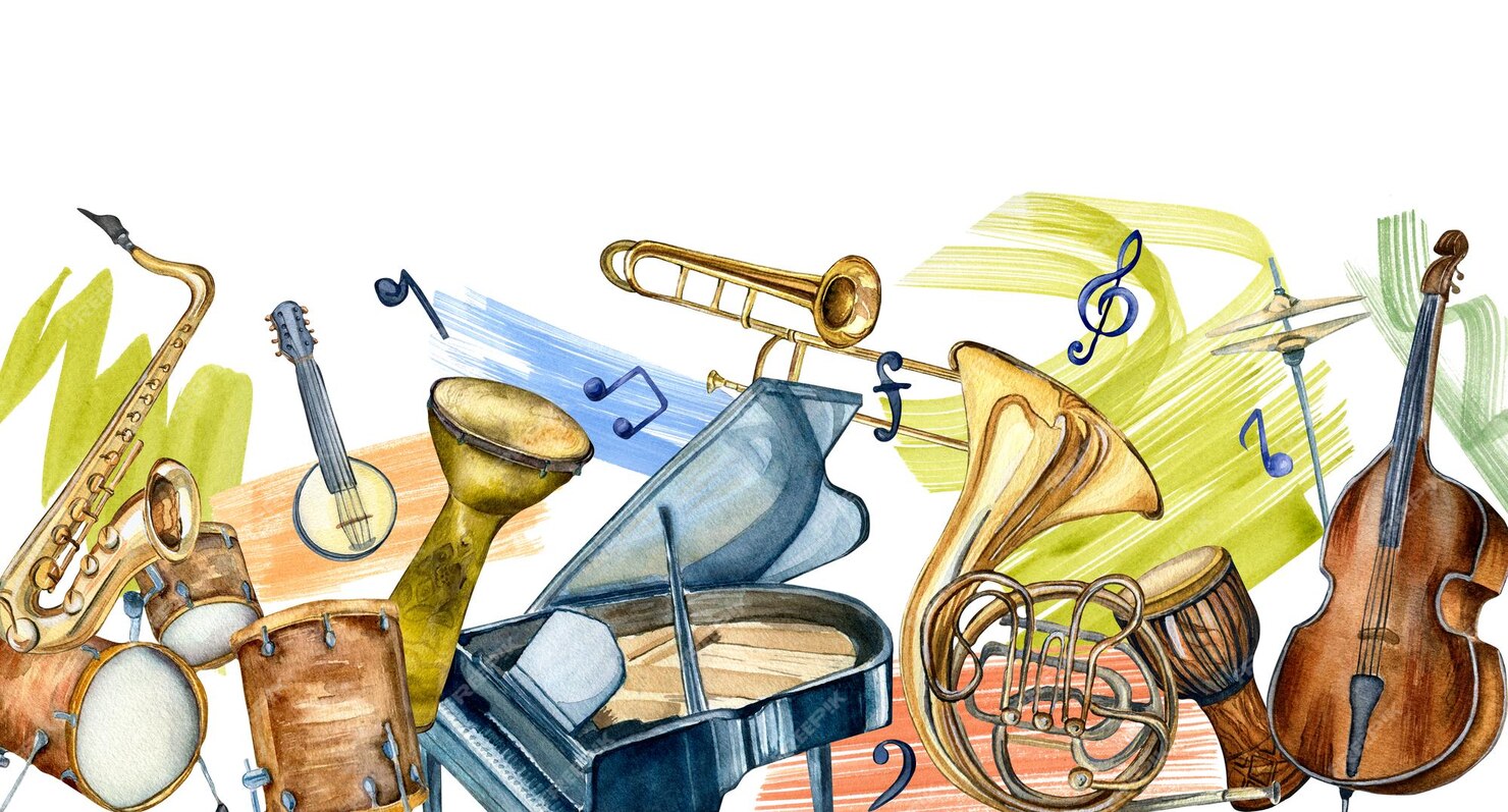 placa-de-instrumentos-musicais-de-jazz-e-ilustracao-em-aquarela-de-pinceladas-isolada-em-branco_613670-2207
